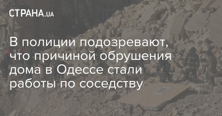 В полиции подозревают, что причиной обрушения дома в Одессе стали работы по соседству