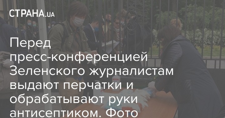 Журналистам выдают перчатки перед пресс-конференцией Зеленского. Фото: "Страна"