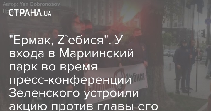 Несколько десятков демонстрантов зажгли файеры и показали короткое требование к Зеленскому на баннере: "Ермак, Z'ебися". После акции участники оставили реквизит в парке. На картоне на украинском языке написаны вопросы к Зеленскому.