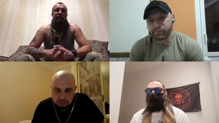 Боец Азова Михаил Бурмистенко в шоу на YouTube (верхний справа)