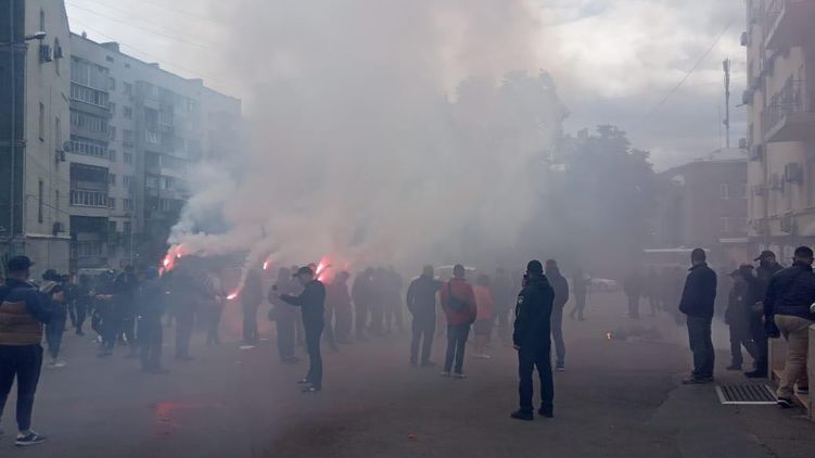 Националисты жгли файера и дымовые шашки, во время атаки был слышен звук взрыва. На место прибыли правоохранители. Началась драка в ходе которой были задержаны несколько метателей пиротехники.