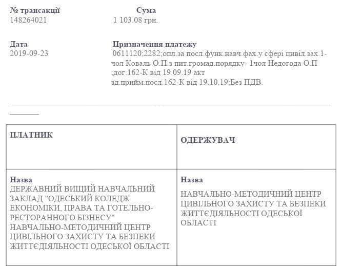 "Благодаря тому, что он передавал дела Соловей (замдиректора по АХЧ на время пожара - Ред.), на руках осталась его посадова, где указано, что он не являлся ответственным за пожарную безопасность, но указано, что он должен был организовать процесс обучения ответственных лиц. Ответственными за пожарную безопасность в колледже были Коваль О. П и здания на Троицкой - Фомич Т. Г., о чем свидетельствуют транзакции оплаты за их обучение. Последнее было в сентябре 2019 года. Кстати, на заседании судья под аудиозапись сказал: он в курсе, что ответственным за пожарную безопасность на Троицкой является Фомич Т. Г.", - пишет Елена Ротари. Также она опубликовала скрины транзакций об оплате обучения ответственных за пожарную безопасность сотрудников колледжа.