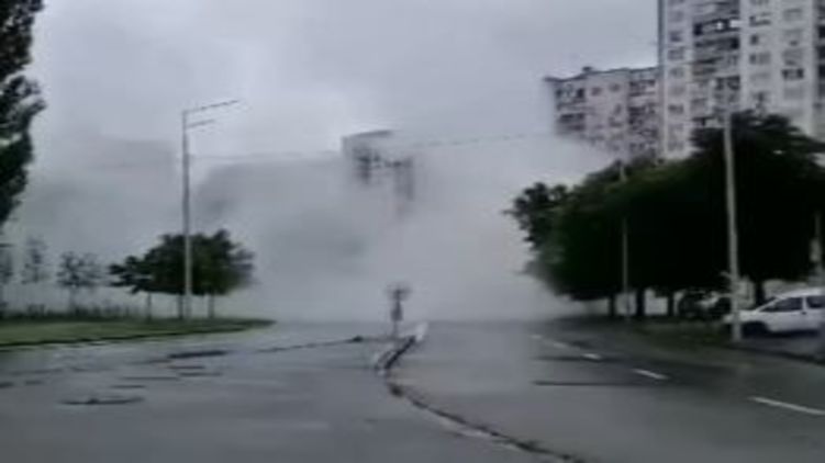Появилось видео, как в столичной Демеевке из-под асфальта забил грандиозный фонтан
