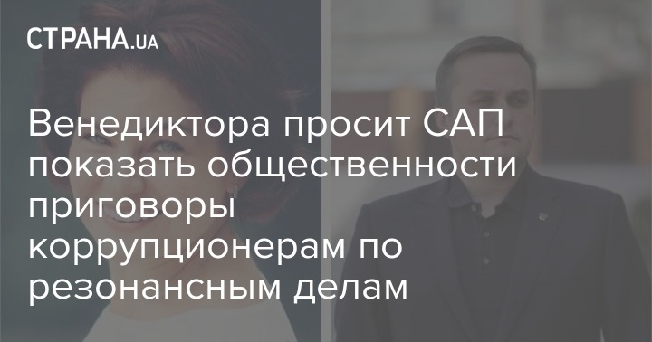 Венедиктора просит САП показать общественности приговоры коррупционерам по резонансным делам