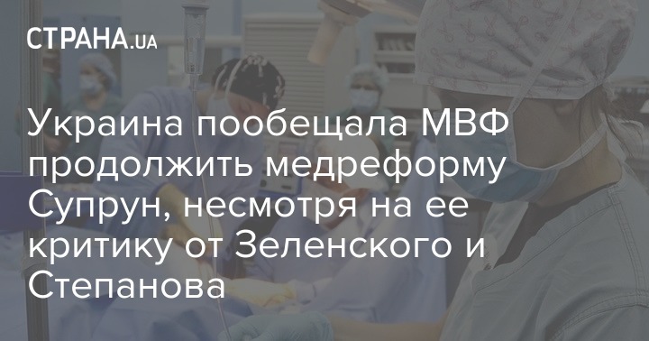 В тексте меморандума МВФ указано, что "реализация реформы здравоохранения будет продолжена в 2020 году путем распространения нового способа финансирования на вторичную и специализированную помощь". То есть, Украина взяла на себя обязательства продолжать реформу Супрун.