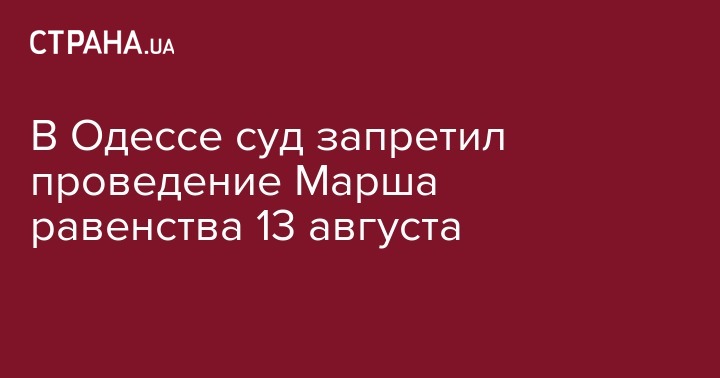 Одесский окружной административный суд, по просьбе городского совета, запретил проведение в городе Марша равенства, который планировали провести 13 августа в рамках фестиваля "Одесса Прайд-2016". Об этом сообщают Украинские новости.