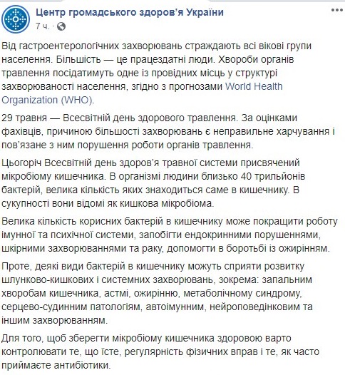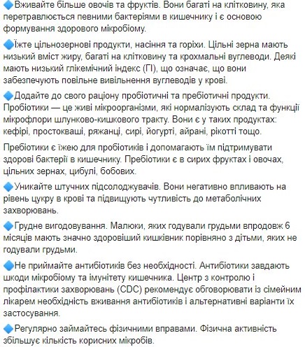В МОЗ объяснили украинцам, что и как часто нужно есть для профилактики кишечных заболеваний