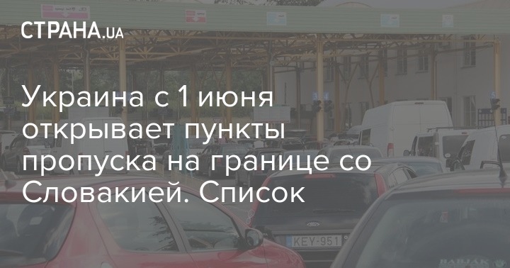 "Мы открываем пункты пропуска на границах со Словакией. В Чопском пограничном отряде сообщили, что с 1 июня, 01:01 ночи по киевскому времени, начинают работать такие КПП: "Ужгород-Вишне Немецкое" - открыт для легкового и грузового автомобильного сообщения, пересечение пешеходов и велосипедистов не позволено; "Малый Березный–Убля" - в полном объеме; "Малые Селменцы-Большие Селменцы" - в полном объеме с 09:00 до 21:00 киевского времени", - говорится в сообщении.