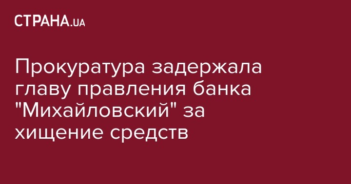 Прокуратура города Киева задержала главу правления ОАО "Банк Михайловский" по подозрению в хищении 870 млн грн банковских средств и доведении финучреждения до неплатежеспособности. Об этом сообщает пресс-служба надзорного ведомства.