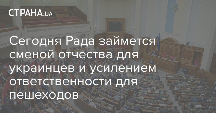 Во время сегодняшнего заседания Рада может поддержать повышение ответственности пешеходов за нарушение правил дорожного движения, и выступить за то, чтобы разрешить украинцам менять отчество.