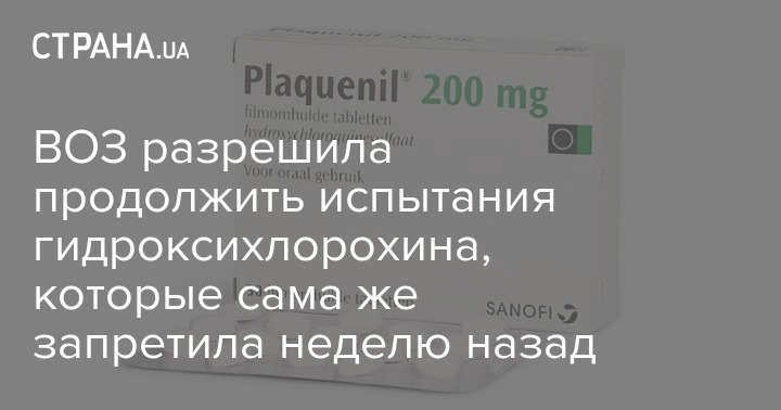 Всемирная организация здравоохранения (ВОЗ), в конце мая остановившая испытания гидроксихлорохина в качестве средства от коронавирусной болезни, вернула его обратно в тесты лекарственных препаратов от COVID-19.