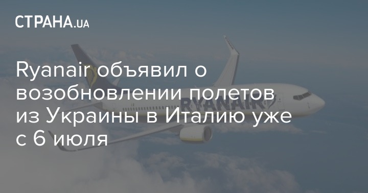 Крупнейший в Европе лоукостер Ryanair намерен с 6 июля возобновить рейсы из Украины в Италию. Об этом сообщает телеграм-канал перевозчика.