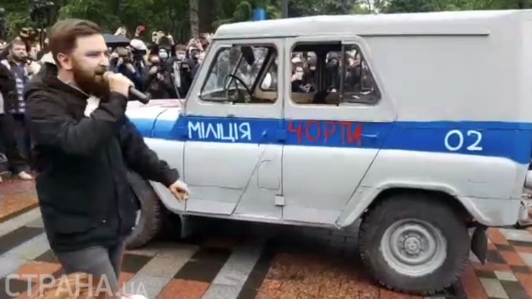 "Вот это - наша реформа. Это старый пердящий "бобик", на котором ездили мусора в 90-х, на котором они били вас, подбрасывали вам траву в карманы, выселяли из квартир, убивали, закапывали и совершали еще множество преступлений", - комментировал в микрофон происходящее один из активистов.