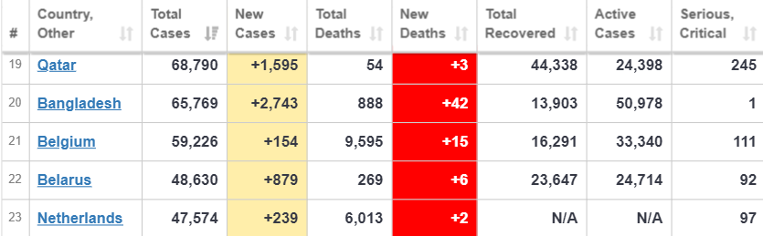 В Беларуси на 7 июня уже у 48 630 человек обнаружен коронавирус. За сутки болезнь нашли у 879 человек. Официально в стране 269 человек скончались от последствий болезни, что является низким показателем по сравнению с другими странами, у которых примерно такое же количество зараженных.