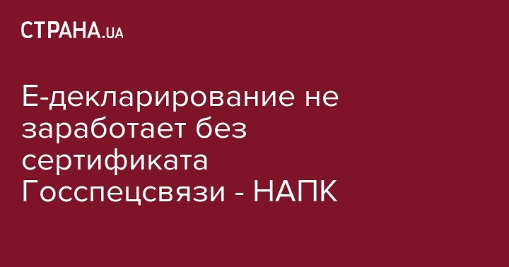 Е-декларирование не заработает без сертификата Госспецсвязи - НАПК