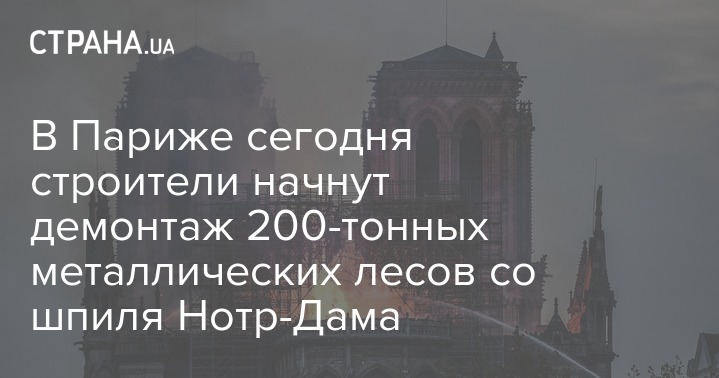В понедельник, 8 июня, в Париже начался демонтаж строительных лесов у шпиля собора Парижской Богоматери, которые пострадали во время пожара в апреле прошлого года