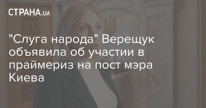 Депутат фракции "Слуга народа" в Верховной Раде Ирина Верещук будет участвовать в праймериз на выдвижение кандидата на пост мэра Киева.