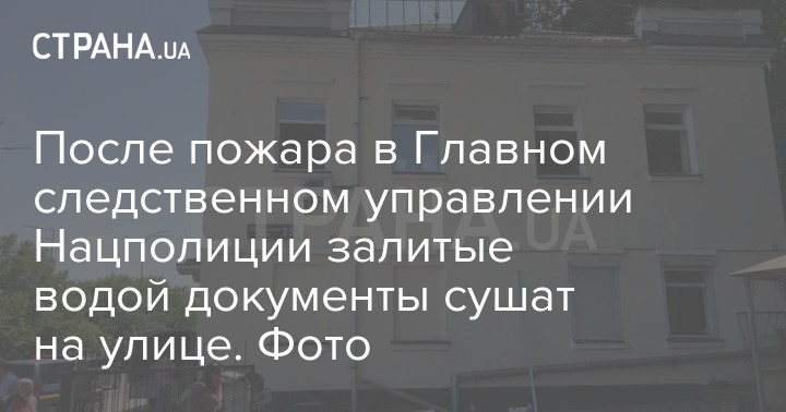 После пожара в здании Главного следственного управления Нацполиции документы сушат на улице. Фото: "Страна"