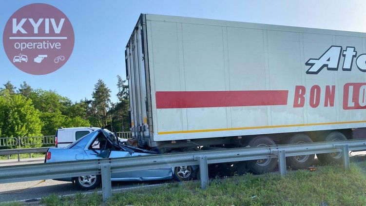Под Борисполем водитель въехал на полном ходу в припаркованную фуру, погибли два человека. Фото и видео