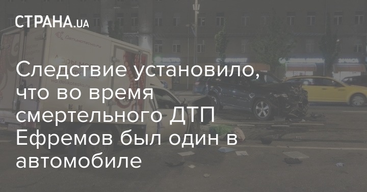В Главном управлении Министерства внутренних дел России по Москве опровергли информацию журналистов, что в момент аварии 8 июня в автомобиле Михаила Ефремова с ним находилась женщина. Как заявили в ведомстве, актер ехал один.