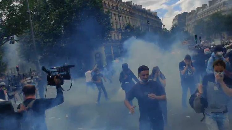 В Париже полиция забросала протестующих против расизма дымовыми шашками. Видео
