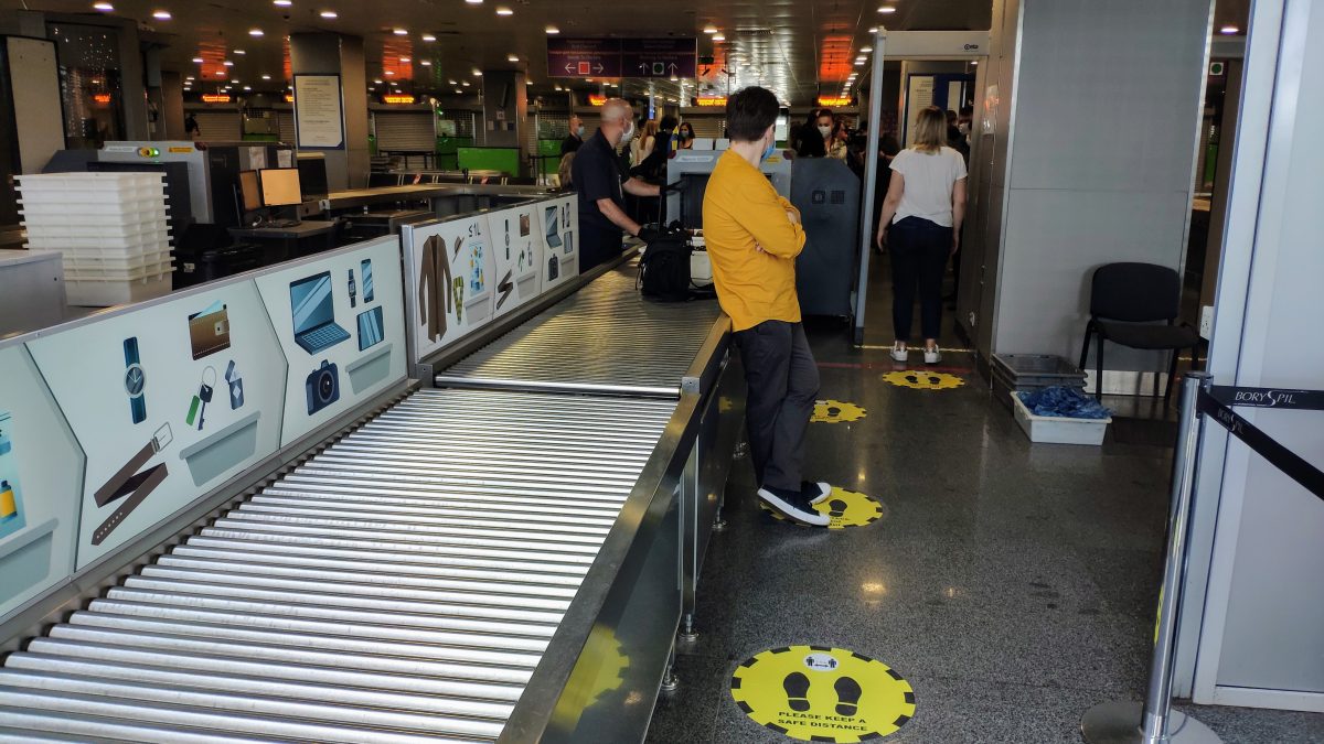 После зоны регистрации пассажиры, как и раньше, будут проходить контроль. Больших изменений вы здесь не увидите. Однако пассажирам придется соблюдать социальную дистанцию. В этом им помогут специальные отметки на полу.