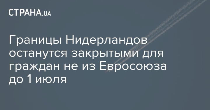 Правительство Нидерландов приняло решение продлить запрет на въезд в королевство жителям стран за пределами Европейского союза, несмотря на то, что сегодня сообщалось, что нидерландская авиакомпания возобновила авиасообщение с Украиной. Границы останутся закрытыми до 1 июля.