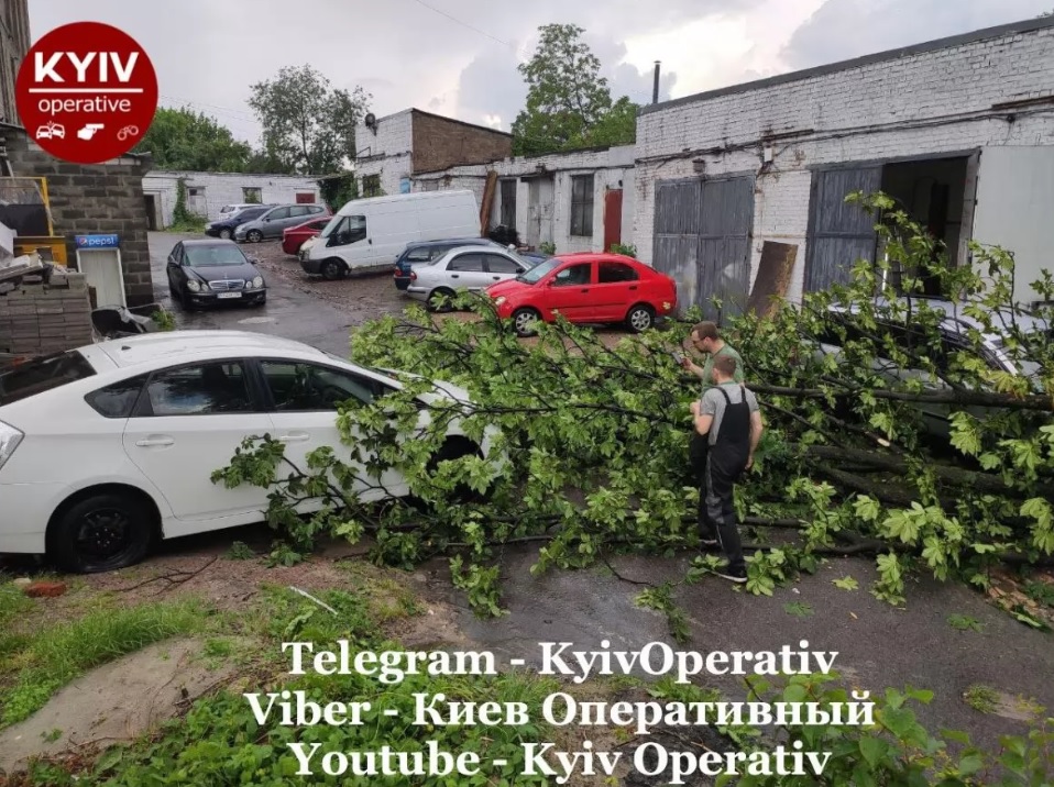 В понедельник, 15 июня, стихия в центре Киева повалила несколько деревьев и повредила припаркованные под ними авто.