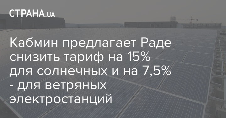 На сайте Верховной Рады появился текст правительственного законопроекта об усовершенствовании условий поддержки производства электроэнергии из альтернативных источников. Документ предусматривает снижение "зеленых" тарифов для введенных в работу в период с 1 июля 2015 до 31 декабря 2019 года солнечных станций (СЭС)  мощностью больше 1 МВт на 15%, а для ветряных (ВЭС) с турбинами 2000 кВт – на 7,5%.