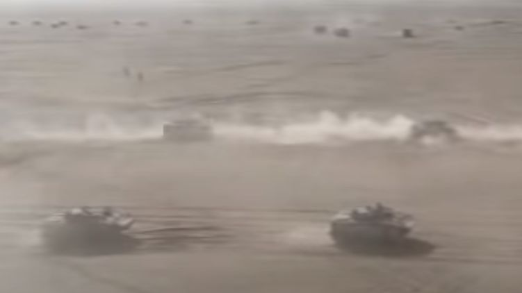 После учений Китай оставил своих военных и технику в районе оспариваемой территории. Скриншот с видео