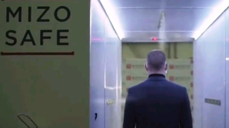 В резиденции Путина появился дезинфицирующий туннель. Человека дезинфицируют туманным облаком.