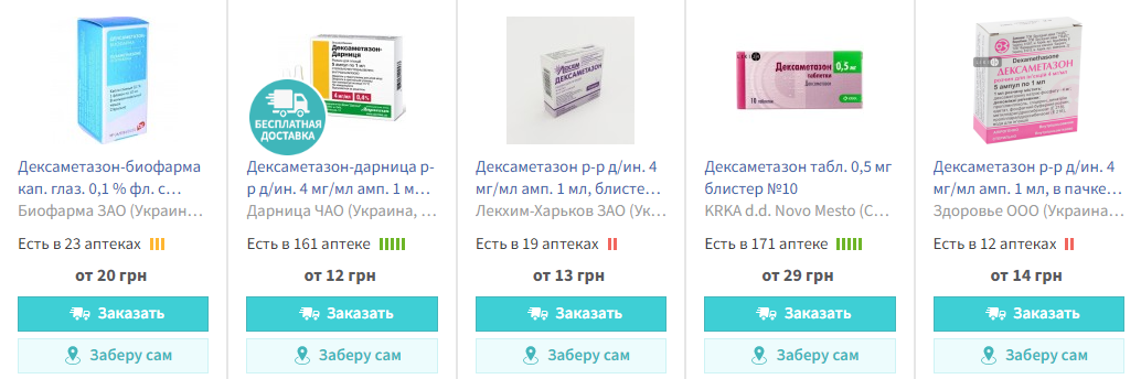 Дексаметазон - это преимущественно раствор для инъекций, встречается в таблетках и каплях. В реанимации препарат назначают внутривенно, менее тяжелые пациенты могут принимать его в таблетках. Его можно свободно купить в украинских аптеках - цена лекарства в ампулах - стартует от 12 грн.