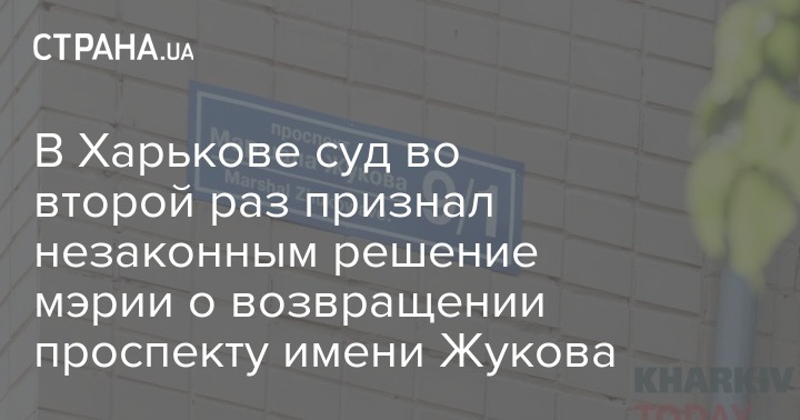 В Харькове суд во второй раз признал незаконным решение мэрии о возвращении проспекту имени Жукова