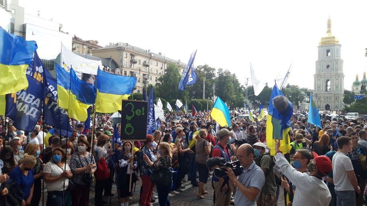Среди приверженцев "Европейской солидарности" замечены депутат его фракции София Федына, а также художник Сергей Поярков. Федына анонсировала, что скоро начнется официальная часть акции протеста. Также она призвала людей не вестись на провокации.