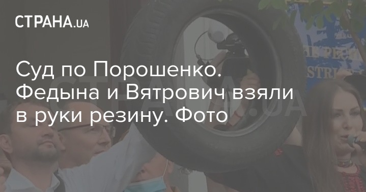 Под зданием Печерского районного суда Киева, где избирают меру пресечения бывшему президенту Петру Порошенко по делу о назначении Семочко, нардеп и экс-глава Института нацпамяти Владимир Вятрович вынес автомобильную покрышку.