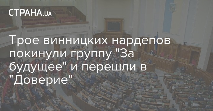 На сегодняшнем заседании парламента стало известно, что три народных депутата Верховной Рады Украины, избранные в винницких мажоритарных округах, вышли из группы "За будущее" и перешли в группу "Доверие". Это Лариса Билозир, Геннадий Вацака и Николай Кучер.