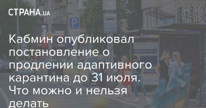 В Кабинете министров Украины обнародовали текст постановления о продлении адаптивного карантина до 31 июля.