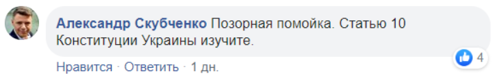 "Статью 10 Конституции Украины изучите", - пишет блогер Александр Скубченко, который напоминает о статье, гарантирующей свободное развитие и защиту русскому языку.