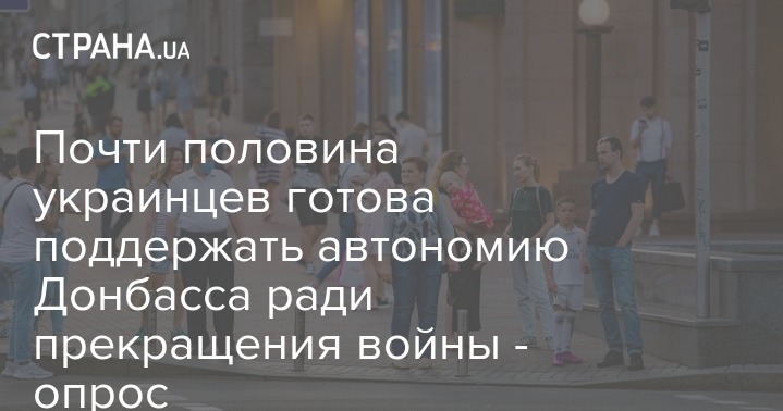 Почти 45% украинцев высказались за то, чтобы предоставить неподконтрольным территориям Донецкой и Луганской областей особый статус, который предполагает автономию в составе Украины, для того, чтобы прекратить войну.