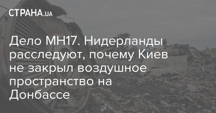 Нидерланды согласились расследовать обстоятельства, исходя из которых Украина не закрыла воздушное пространство для гражданских авиаперевозок в зоне вооруженного конфликта на Донбассе, где в 2014 году потерпел крушение самолет Boeing MH17.
