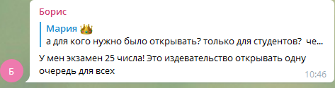 "У меня экзамен 25 числа! Это издевательство открывать одну очередь для всех".