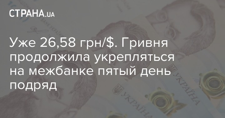 Во вторник, 23 июня, курс гривни на межбанковском валютном рынке снова укрепился до 26,5875 грн/$1 с 26,6800 грн/$1 в понедельник