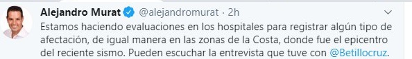 "Повреждена больница в Уатулько, необходимо будет переместить пациентов", - добавил Мурат.