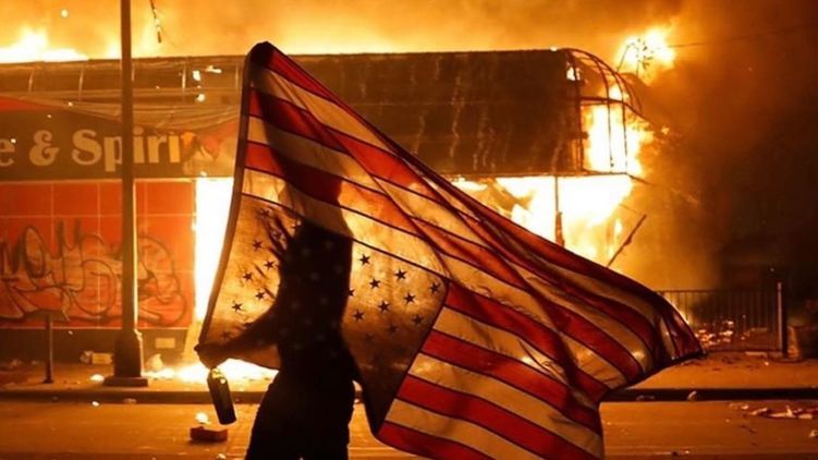 Напомним, в Америке продолжаются расовые беспорядки с погромами, грабежами, пожарами и вандализмом. Мирный протест, вызванный убийством темнокожего Джорджа Флойда белым полицейским, перерос в жесткий "черный майдан". В десятках городов введен комендантский час, но многие его попросту игнорируют, полиция вместе с военными не могут усмирить озверевшие толпы бунтовщиков.