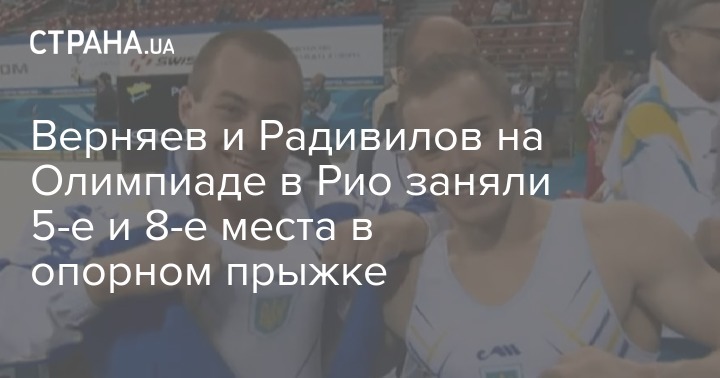 Украинские спортсмены Олег Верняев и Игорь Радивилов заняли пятое и восьмое места соответственно на соревнованиях по спортивной гимнастике в опорном прыжке на Олимпийских Играх в Рио-де-Жанейро. Об этом сообщает официальный сайт Олимпиады-2016.