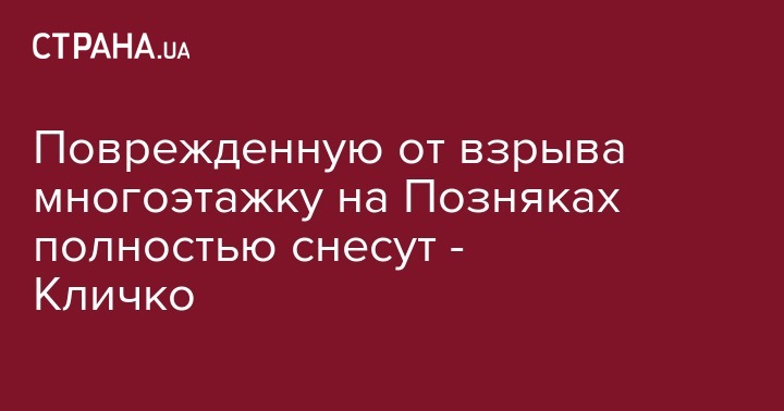 Поврежденную от взрыва многоэтажку на Позняках полностью снесут - Кличко