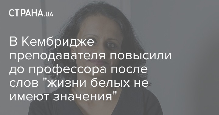 Руководство Кембриджского университета решило поддержать свою сотрудницу, написавшую в Твиттере "White Lives Don't Matter" (Жизни белых не имеют значения), а также повысить ее до профессора.
