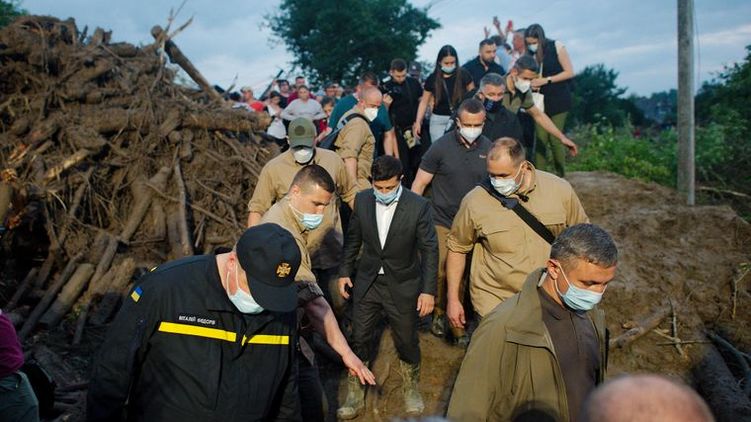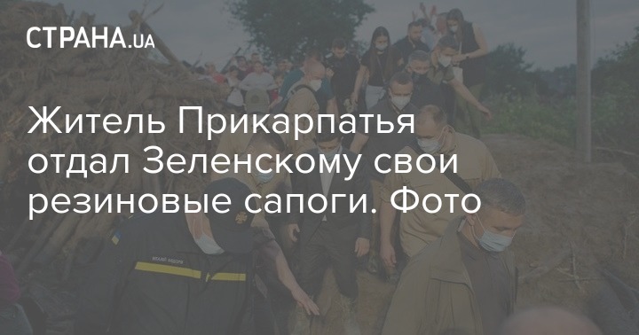 Президент Владимир Зеленский в четверг побывал с рабочей поездкой в Ивано-Франковской области, сильно пострадавшей от наводнений. В селе Ланчин его кортеж попал в непролазную грязь, и один из местных жителей отдал ему свои сапоги.
