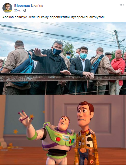 В этих сапогах Владимир Зеленский попал на еще одни кадры, которые привлекли внимание. Стоя на мосту рядом с оживленным Аваковым, который энергично жестикулирует, президент контрастирует с ним своим уставшим и апатичным видом. Да еще и сапоги добавили неказистый штришок в образ прездента.