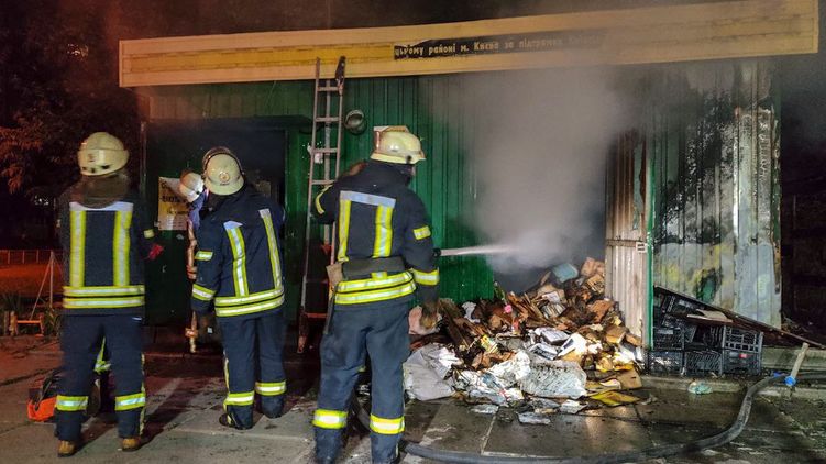 "26 июня в 2:09 в оперативно-координационный центр Главного управления ДСНС Украины в г. Киеве поступило сообщение о пожаре на ул. Ревуцкого, 7-В, в Дарницком районе столицы. На место происшествия были направлены спасатели 5-й Государственной пожарно-спасательной части. По прибытию было установлено, что около 9-ти этажного жилого дома в отдельно расположенном металлическом павильоне размером 5х5 м возник пожар с последующим распространением огня на рядом расположенный металлический павильон по приему вторичного сырья размером 4х7 м. Не теряя времени, спасатели сразу же приступили к тушению пожара", - указано в сообщении.